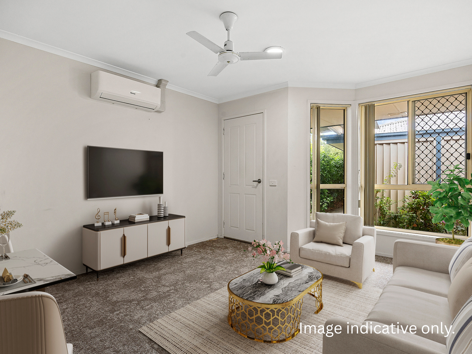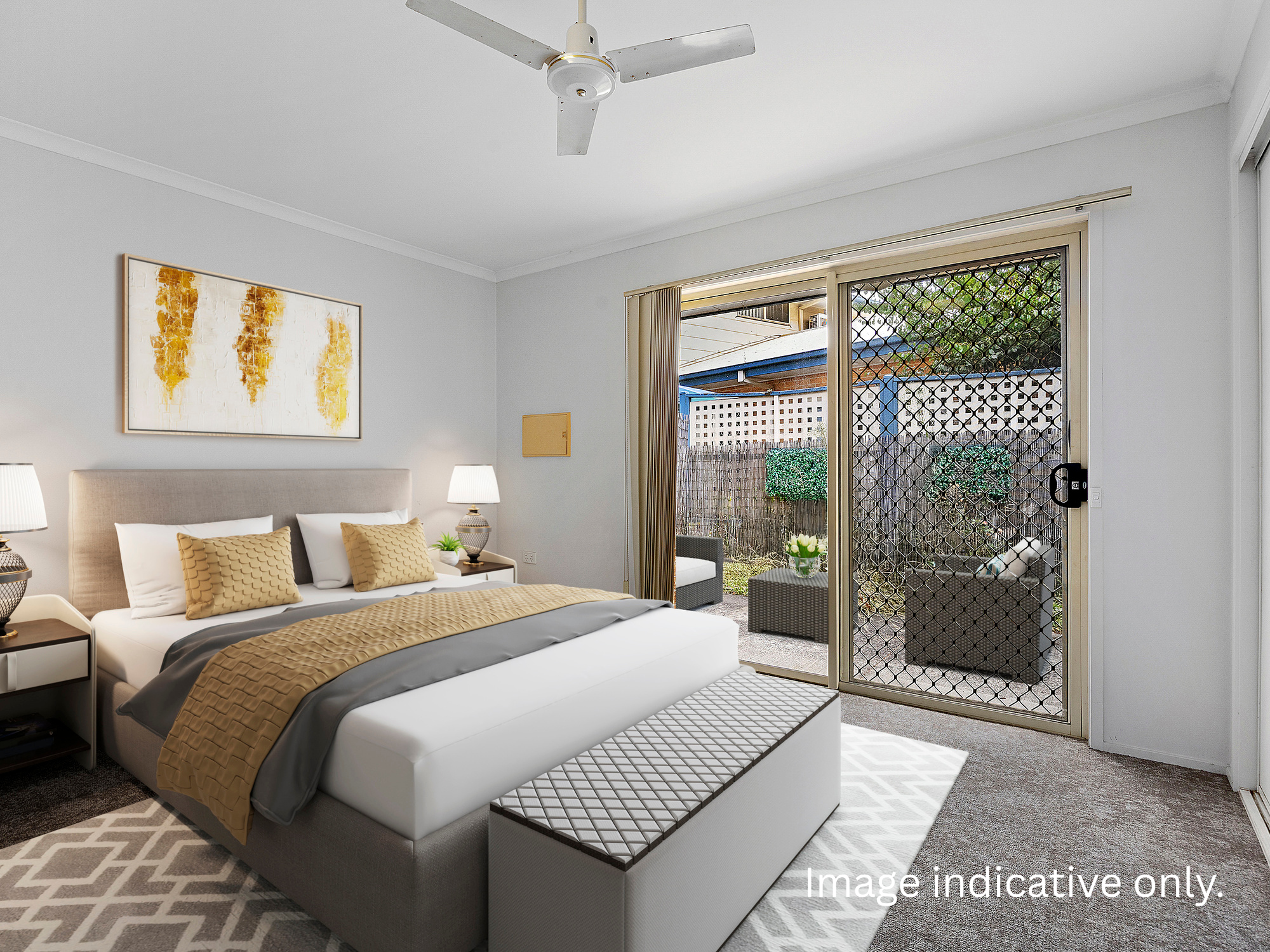 - Security screens and ceiling fan