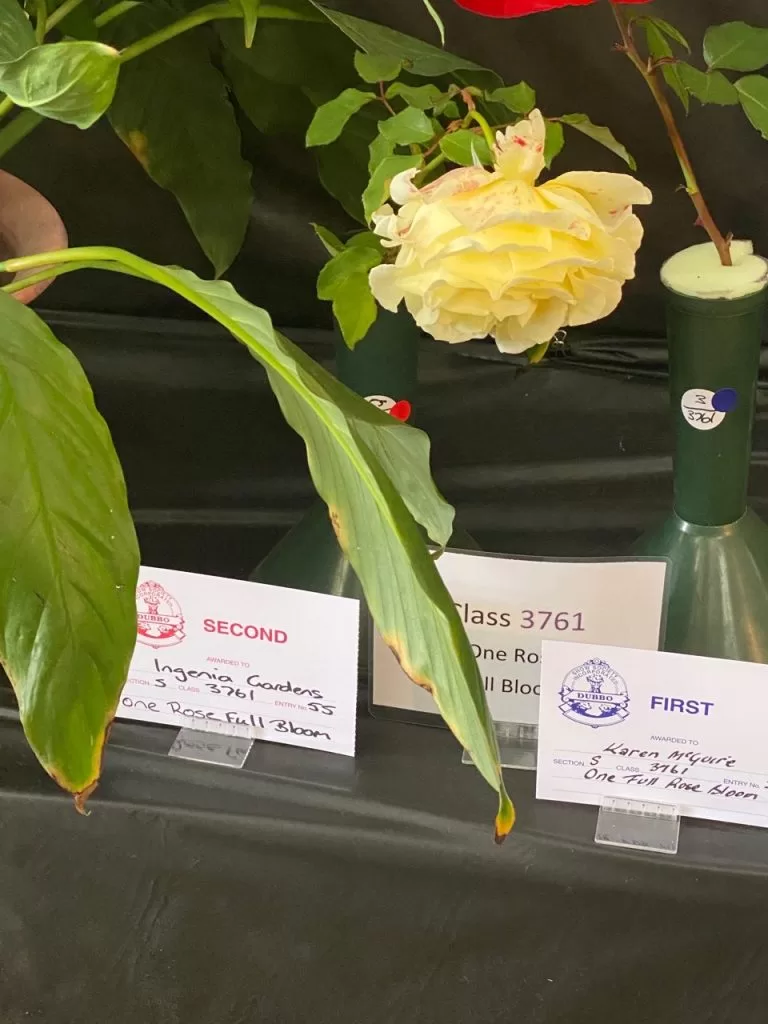 Rose title as well as placed in all of the rose categories of the Show Section S `Flowers’.